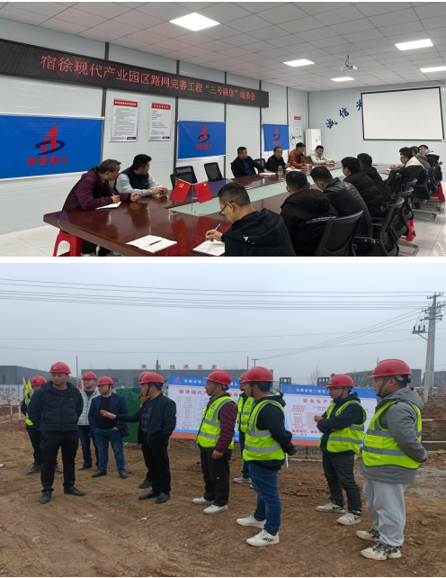 3月22日第六分公司在宿徐現(xiàn)代產業(yè)園市政項目召開“黨員先鋒號、工人先鋒號、青年文明號”三號聯(lián)創(chuàng)工作動員會。
