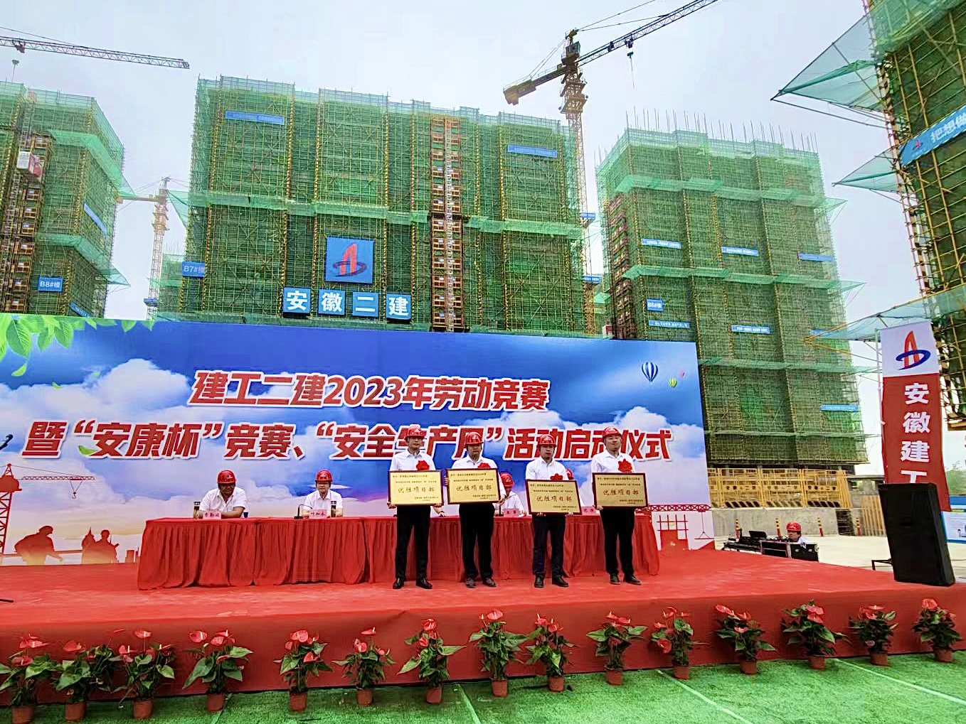 5月30日上午,建工二建在蕪湖中丞濱江時代項目現(xiàn)場舉行2023年勞動競賽暨“安康杯”競賽、“安全生產月”活動啟動儀式。公司領導班子成員,勞動競賽委員會成員,所屬各單位主要領導,分管安全、生產及質量副經(jīng)理,工會(副)主席,工管科、安全科科長,公司工會、工程管理部、安全管理部、技術質量部相關人員,受表彰先進集體和個人代表等共百余人參加本次活動,公司黨委副書記、工會主席王軍主持啟動儀式。