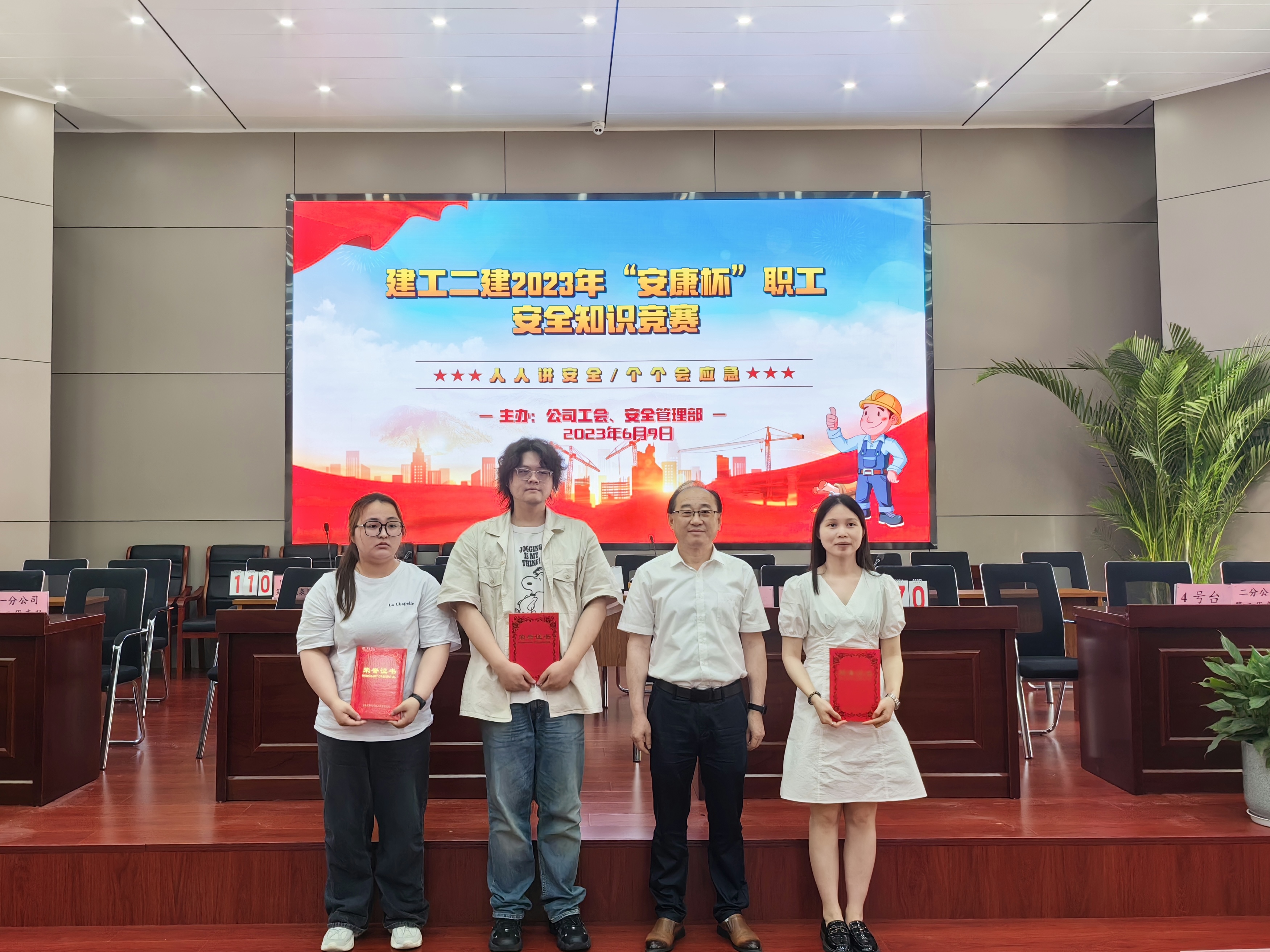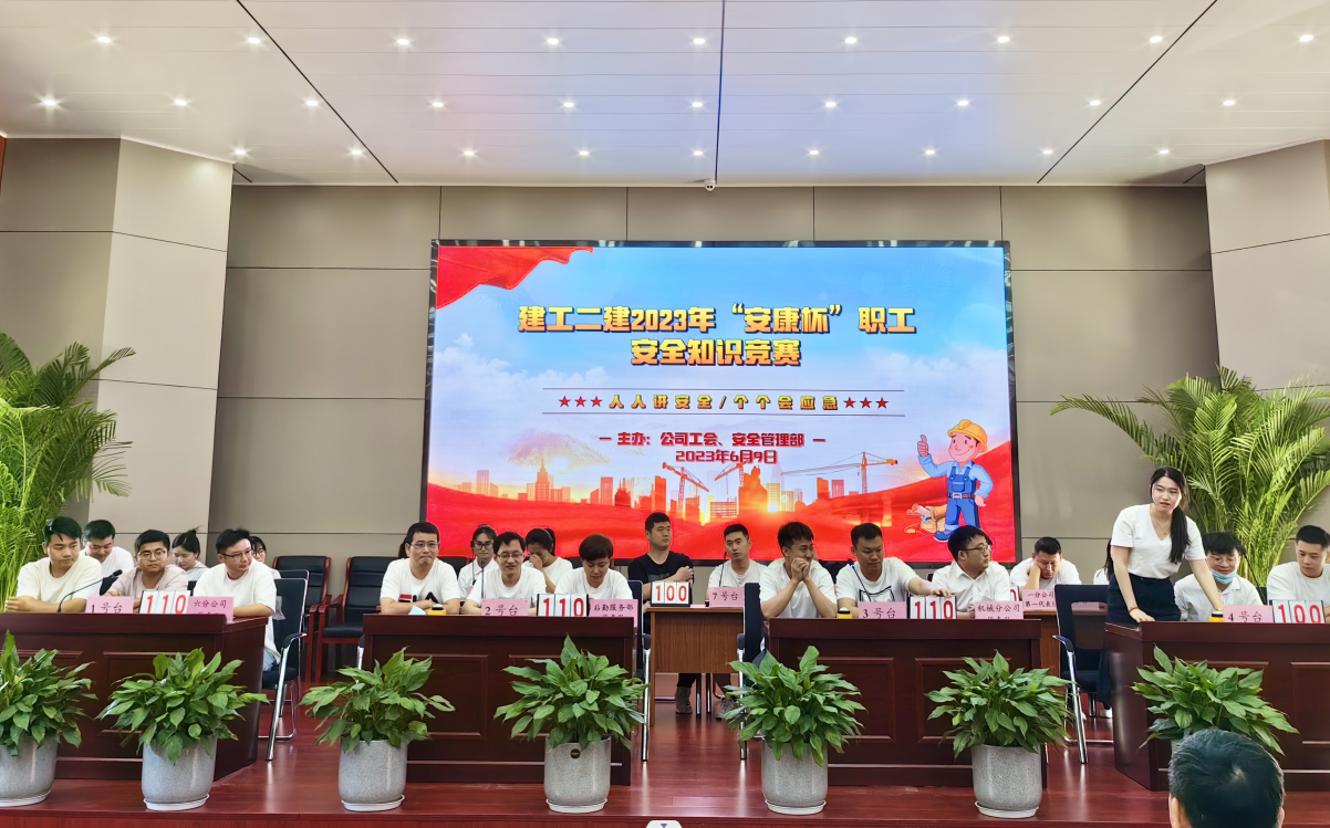 今年六月是第22個(gè)全國(guó)“安全生產(chǎn)月”,主題為“人人講安全,個(gè)個(gè)會(huì)應(yīng)急”。6月9日上午,公司工會(huì)牽頭,與安全管理部聯(lián)合舉辦了建工二建2023年“安康杯”職工安全生產(chǎn)知識(shí)競(jìng)賽活動(dòng)。安全知識(shí)競(jìng)賽的開(kāi)展,旨在通過(guò)以賽促學(xué)、以學(xué)促用,大力弘揚(yáng)“生命至上、安全為天”的安全理念,加強(qiáng)安全知識(shí)宣傳教育,切實(shí)增強(qiáng)廣大職工安全生產(chǎn)意識(shí)和安全管理知識(shí)水平。公司黨委副書記、工會(huì)主席王軍,副總經(jīng)理代鵬飛出席活動(dòng)。