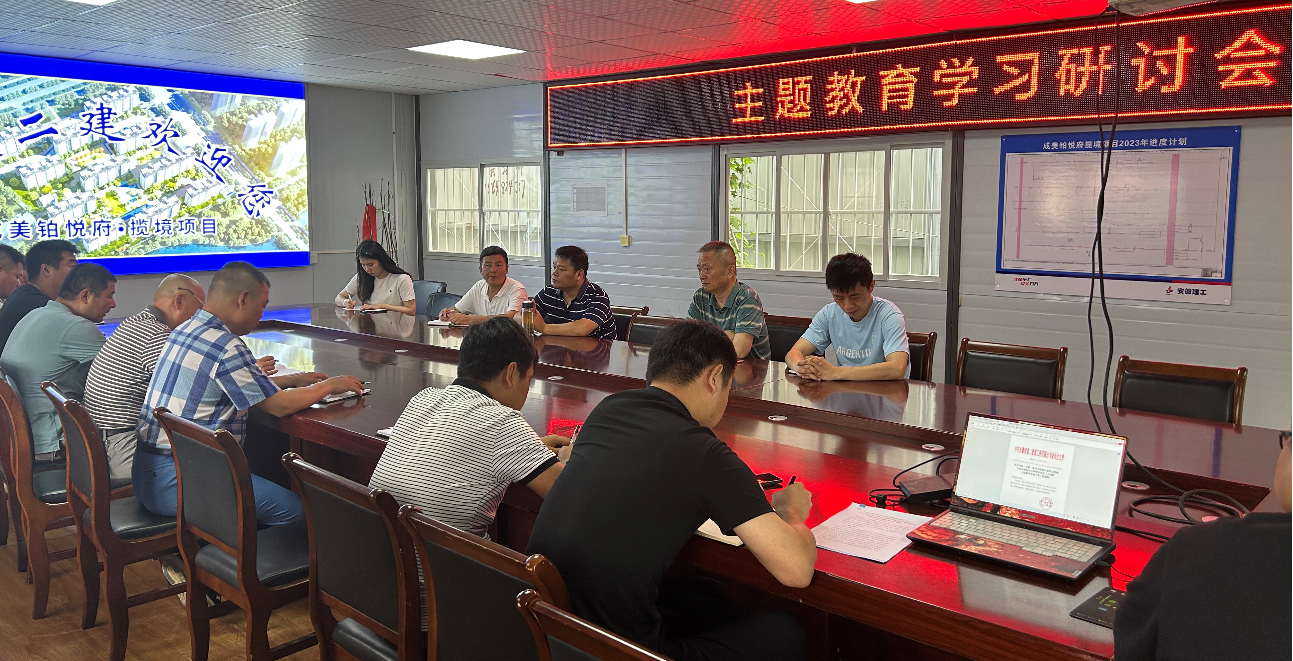 7月18日,第二公司黨支部書記黃業(yè)云至成美鉑悅府攬境項目開展主題教育“三問”交流研討。項目全體黨員參加。