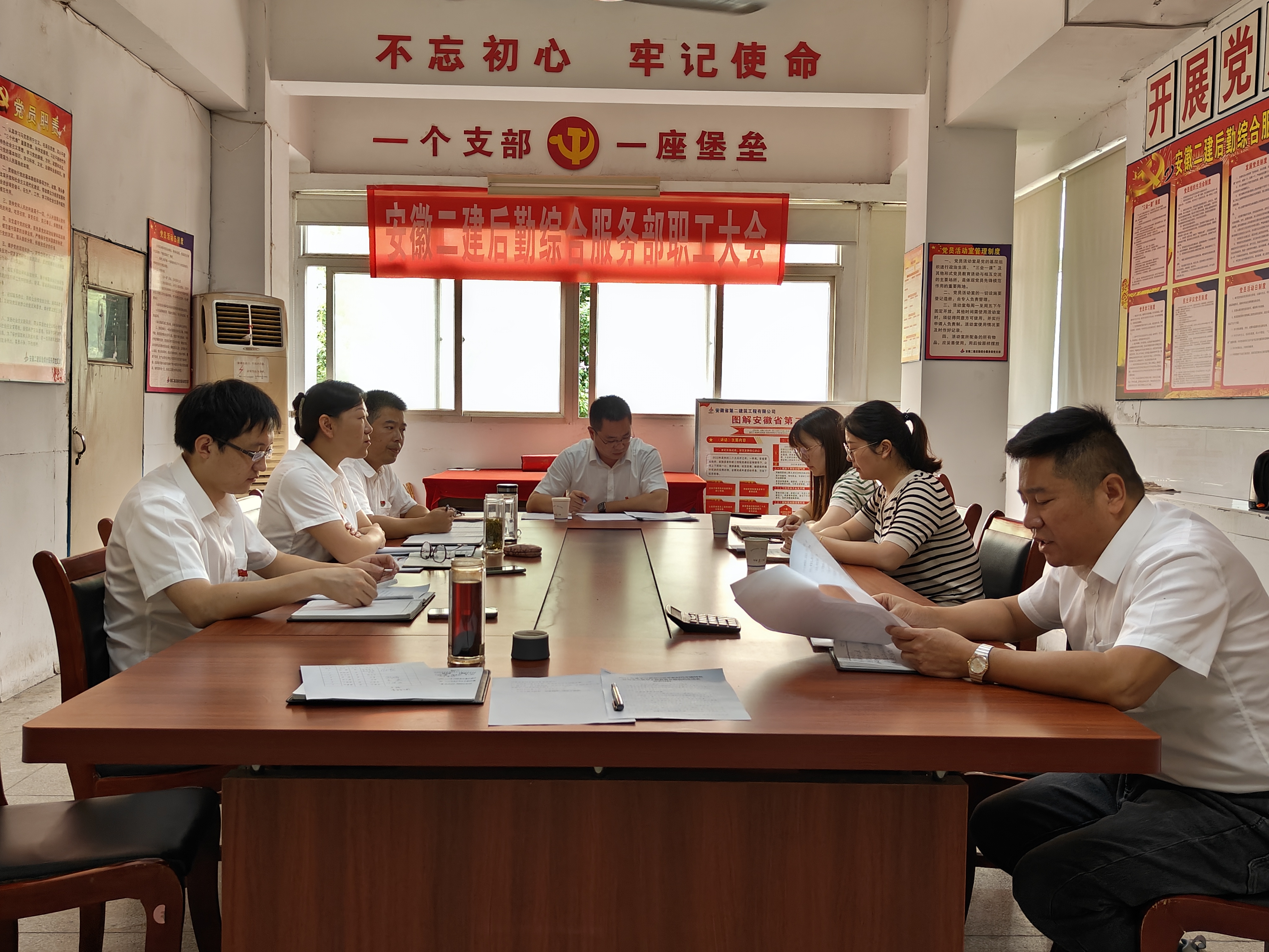 9月4日上午,后勤綜合服務部黨支部召開學習貫徹習近平新時代中國特色社會主義思想主題教育專題組織生活會,公司黨委委員、副總經理張露出席會議并講話,紀檢室主任吳婧,黨委工作部副主任李勝瀾參加會議。會議由后勤綜合服務部紀檢委員周峰主持。后勤綜合服務部全體黨員參會。