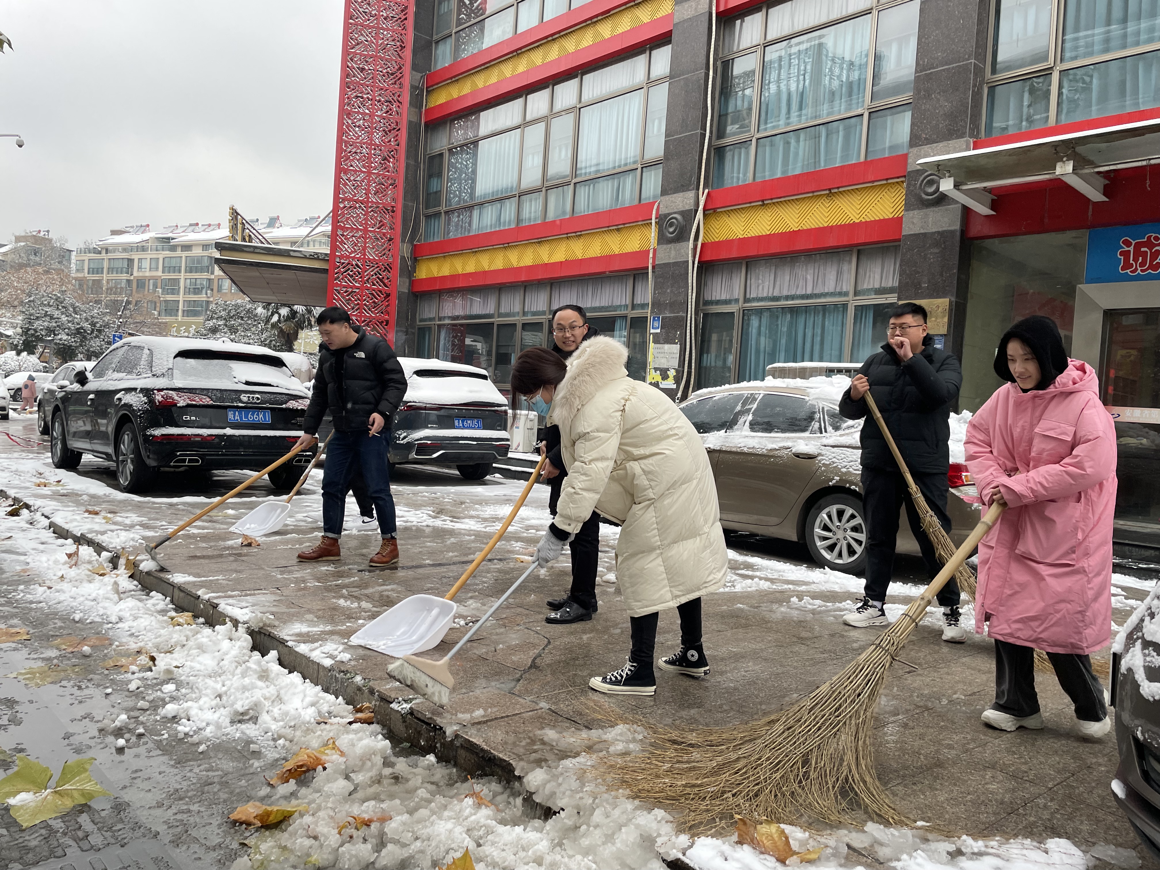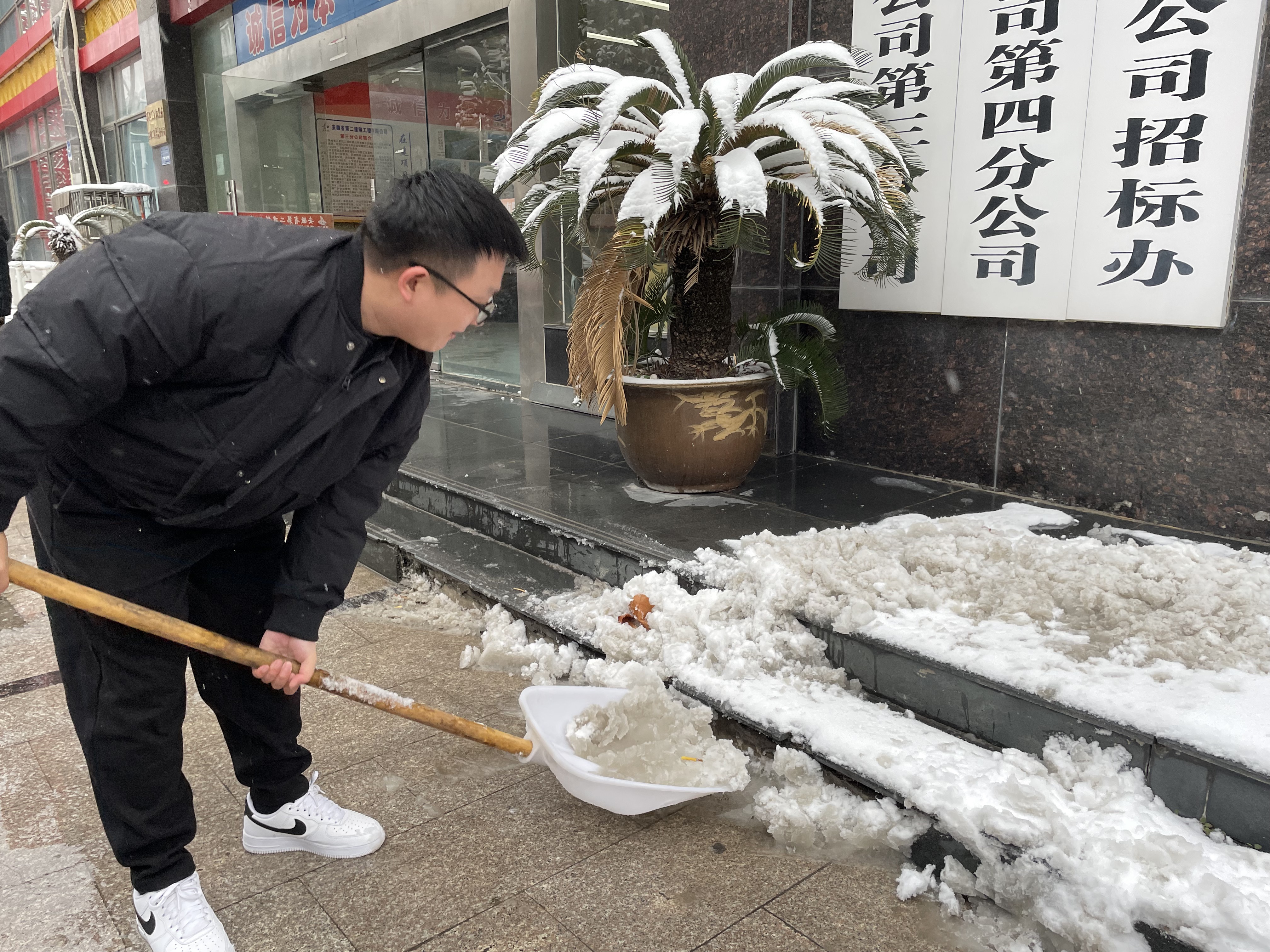 青年團(tuán)員積極響應(yīng),不畏嚴(yán)寒,手拿鐵鍬、掃帚來(lái)到辦公樓前,對(duì)積雪進(jìn)行大清掃。伴隨著凜冽的寒風(fēng)奮戰(zhàn)一個(gè)多小時(shí),終于將公司門口和內(nèi)部道路積雪全部清理,開(kāi)辟了一條洋溢著溫情的通暢安全路。