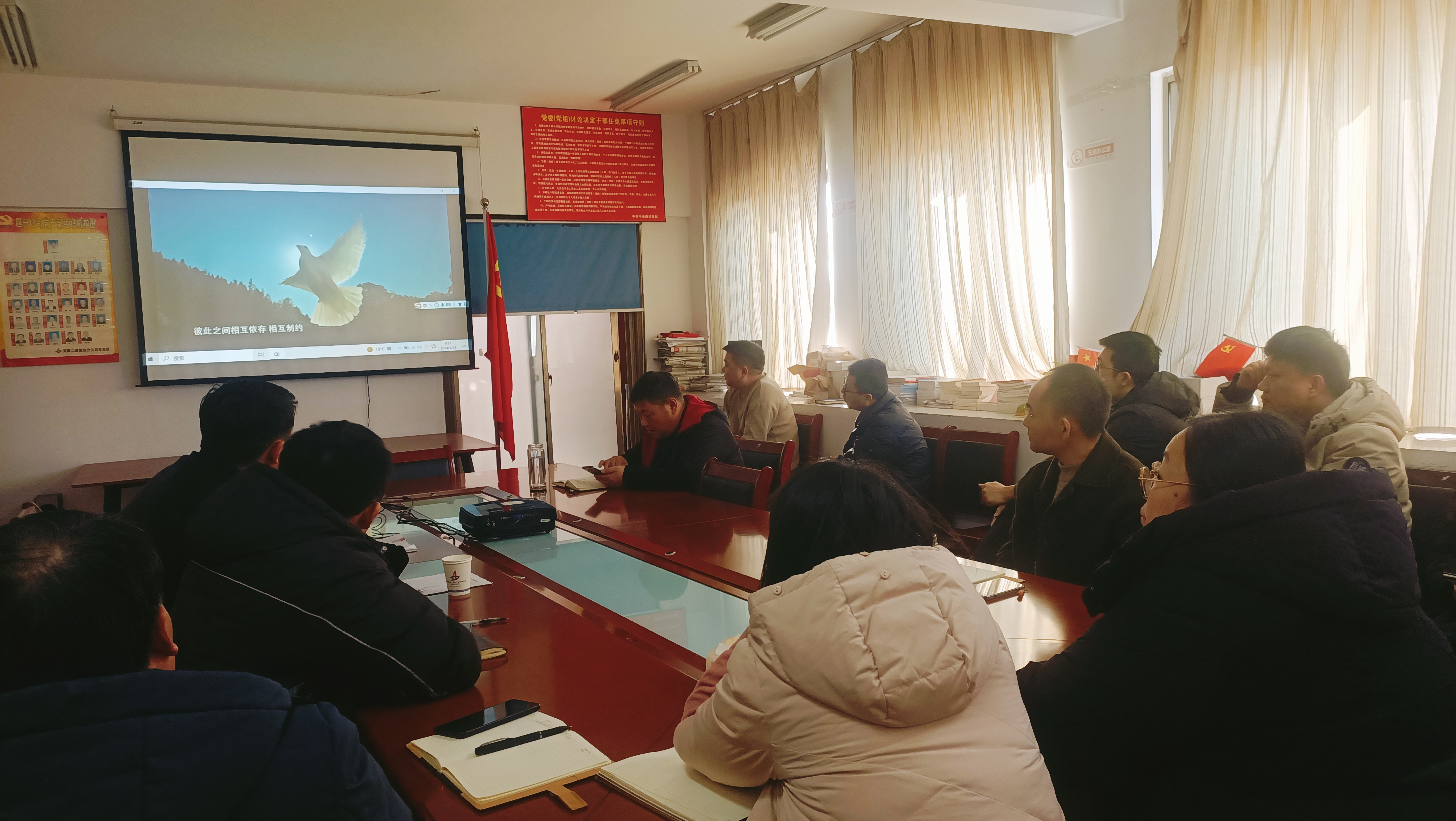 1月15日上午,第四公司召開2023年度黨風廉政工作暨防范化解重大風險調度會議,第四公司領導班子成員、各科室負責人、項目經理參會。