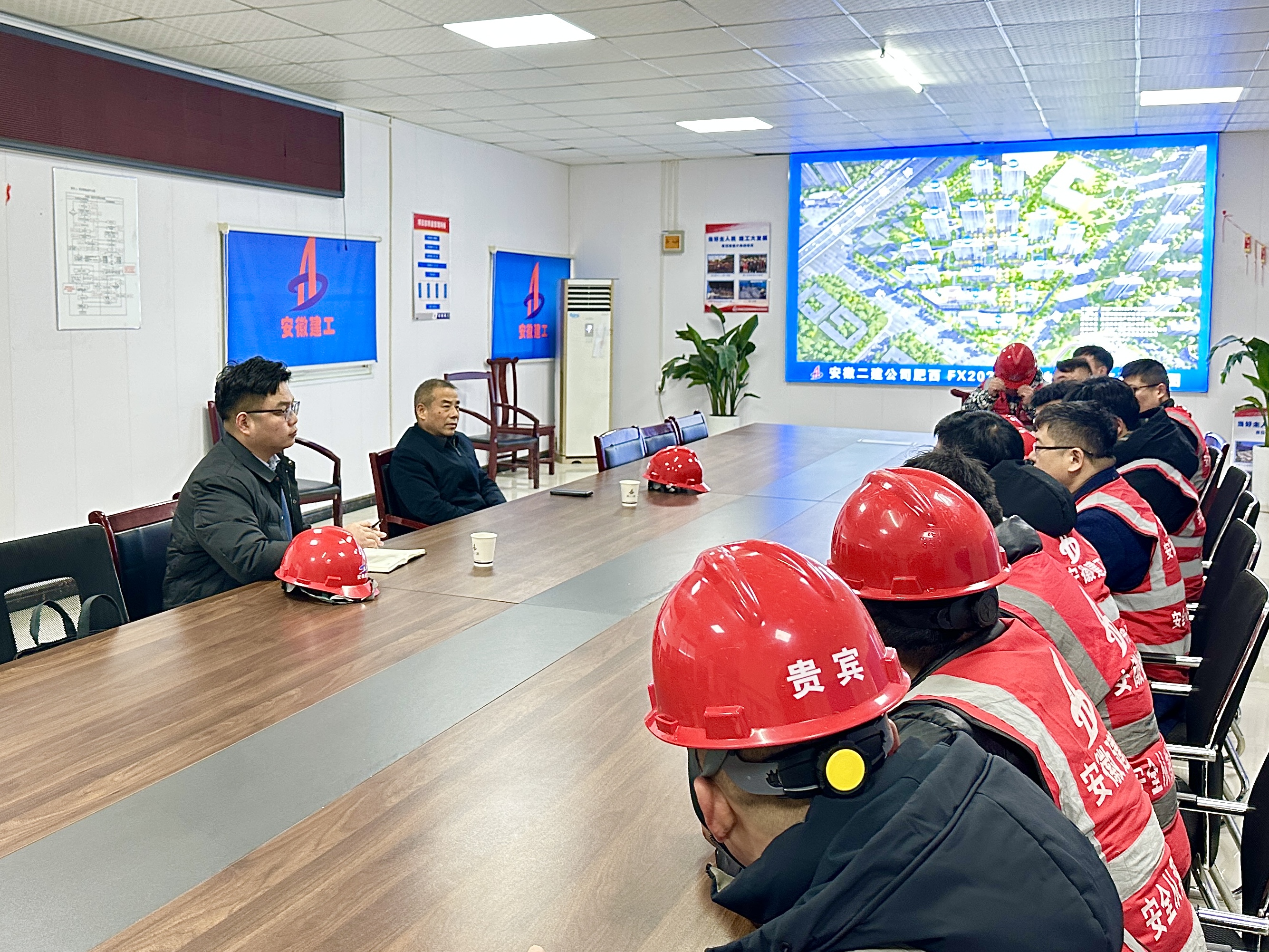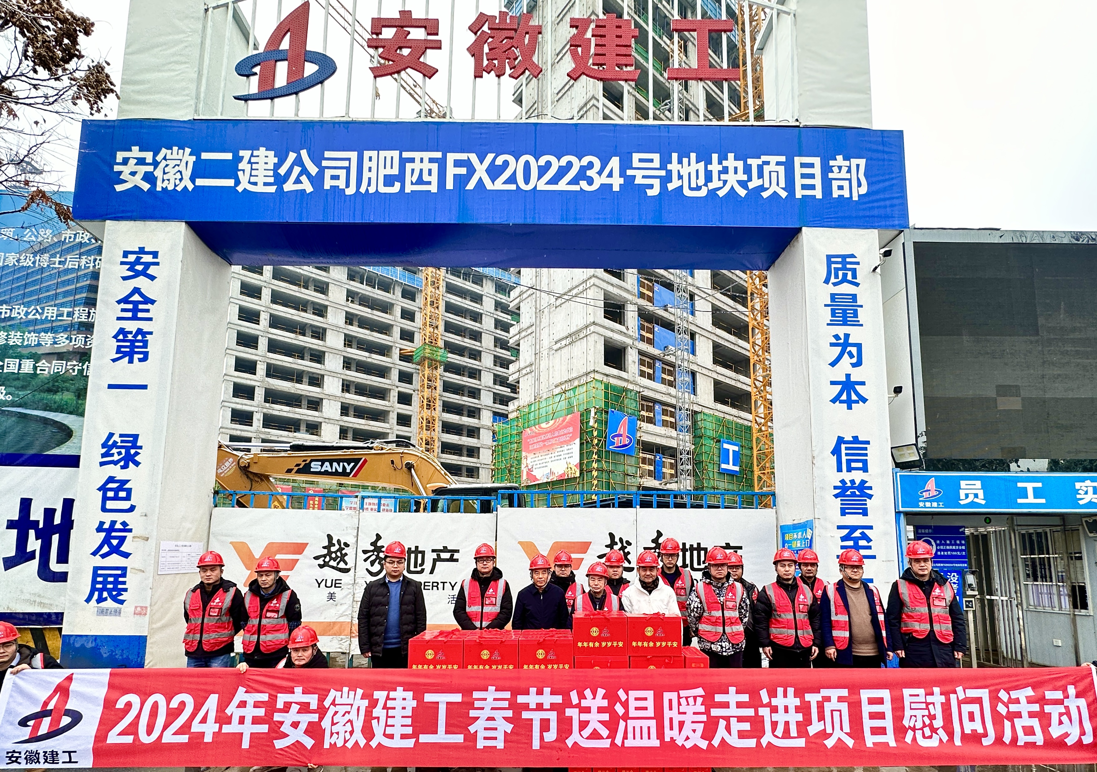 在二建肥西FX202234號地塊項目部,徐文聯(lián)帶隊開展了2024年安徽建工春節(jié)“送溫暖”走進(jìn)項目部慰問活動,向堅守一線崗位的項目管理人員和工人派發(fā)節(jié)日慰問品,對大家一年以來的辛苦工作表示感謝,并送上新春誠摯的祝福和問候。