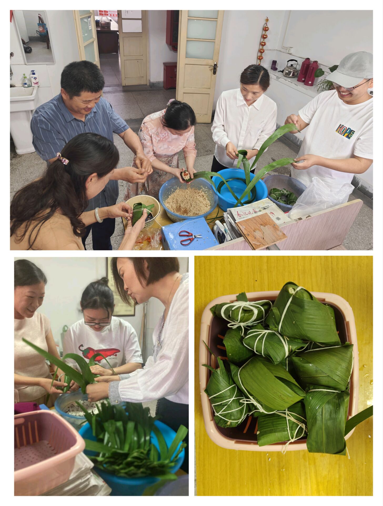 活動現(xiàn)場,粽葉、糯米、絲線等材料整齊擺放,同事們紛紛踴躍參與。大家圍坐在一起,相互交流包粽子的技巧和經(jīng)驗,現(xiàn)場充滿了歡聲笑語。無論是經(jīng)驗豐富的“包粽達人”,還是初次嘗試的新手,都全心投入,努力讓自己手中的粽葉變成一個個飽滿可愛的粽子。