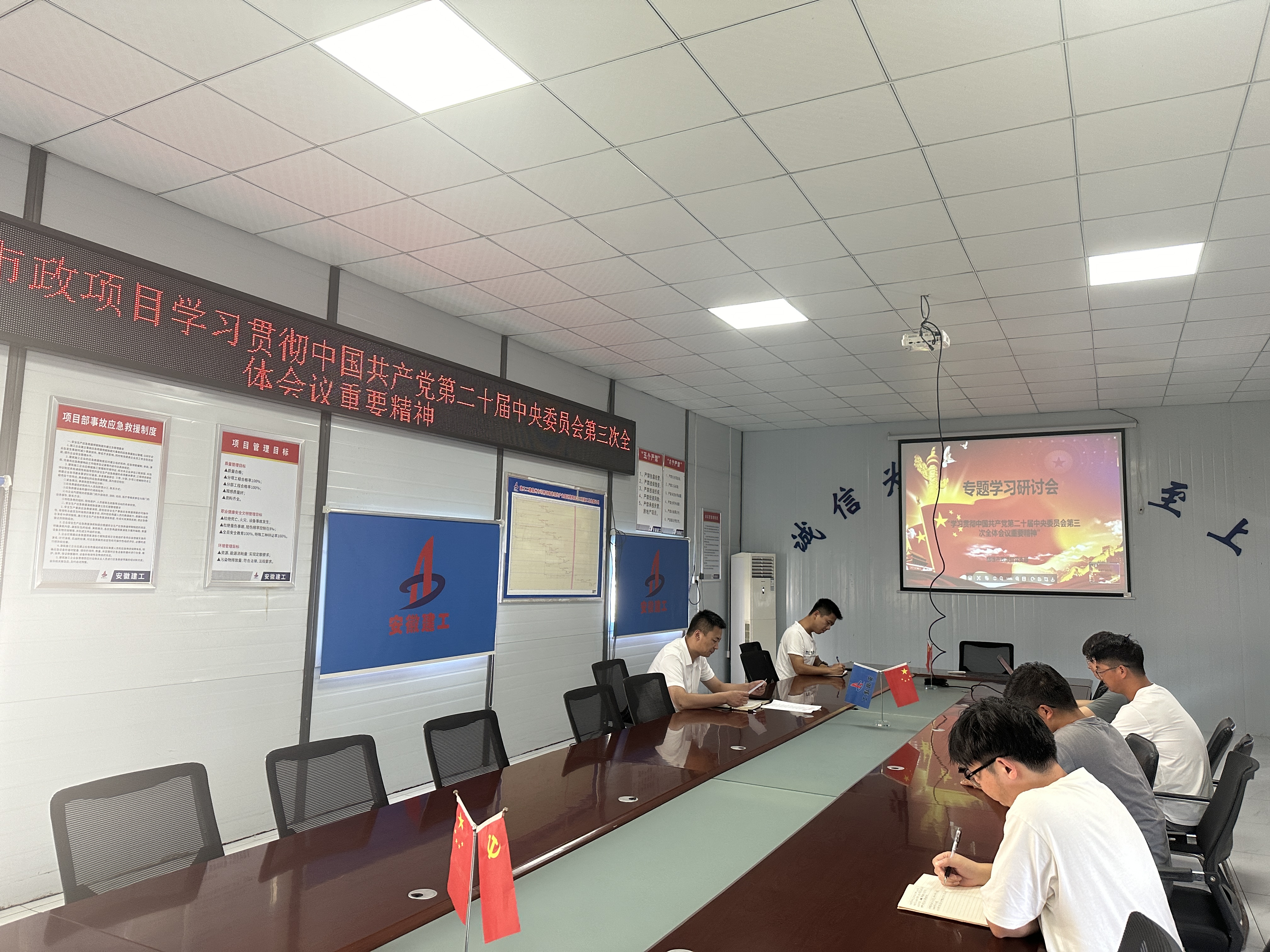 學(xué)習(xí)宣傳貫徹黨的二十屆三中全會精神,是當(dāng)前和今后一個時期的重大政治任務(wù)。宿徐現(xiàn)代產(chǎn)業(yè)園市政項(xiàng)目黨支部認(rèn)真學(xué)習(xí)、廣泛討論、深入交流,學(xué)習(xí)《中國共產(chǎn)黨第二十屆中央委員會第三次全體會議公報》,觀看文件解讀資料,并通過主題黨日、主題團(tuán)日、座談會等共同研讀《黨的二十屆三中全會<決定>學(xué)習(xí)輔導(dǎo)百問》,并結(jié)合自身工作情況分享學(xué)習(xí)心得和體會,持續(xù)掀起學(xué)習(xí)貫徹黨的二十屆三中全會精神熱潮,推動黨的二十屆三中全會精神入腦入心、落地生根。
