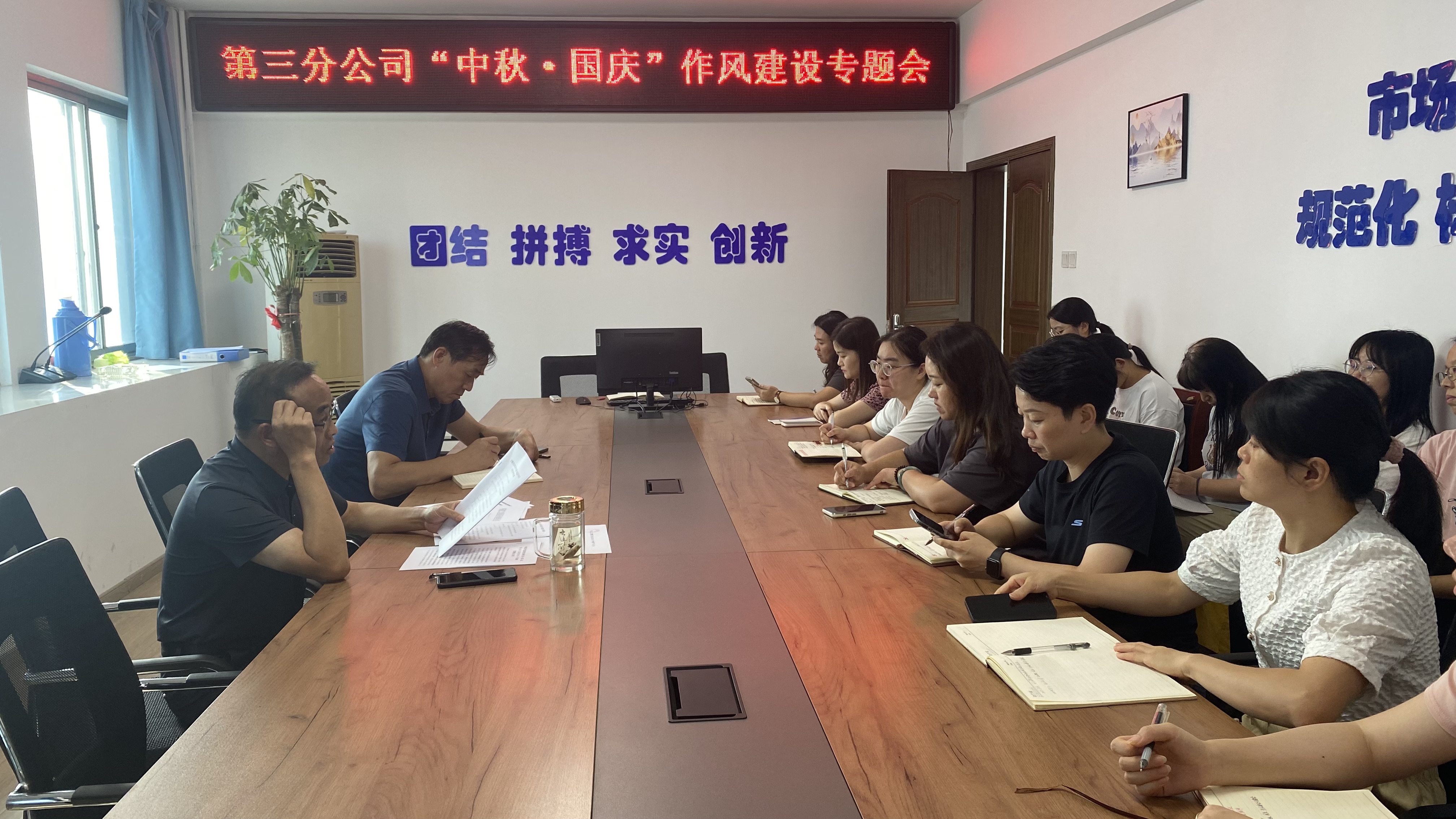 為進(jìn)一步加強(qiáng)“中秋、國(guó)慶”期間紀(jì)律作風(fēng)建設(shè),增強(qiáng)分公司全員廉潔自律意識(shí),營(yíng)造風(fēng)清氣正的節(jié)日氛圍,9月12日下午,第三分公司召開(kāi)“中秋、國(guó)慶”節(jié)前作風(fēng)建設(shè)專(zhuān)題會(huì),會(huì)議由黨支部書(shū)記司圣華主持。