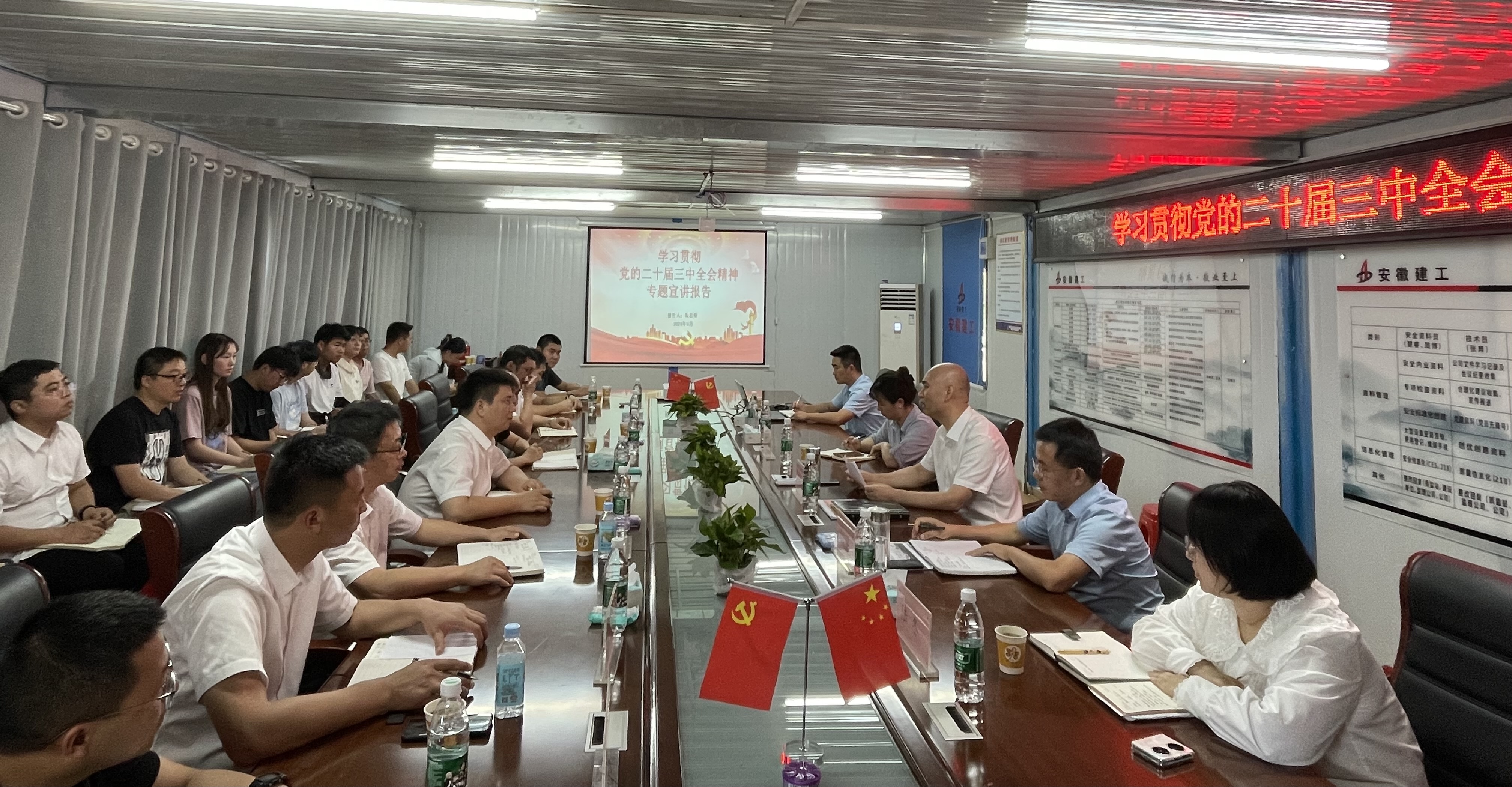 下午,朱忠明在宿徐園區(qū)城鎮(zhèn)一體化A、B地塊項目會議室集中宣講黨的二十屆三中全會精神,并結(jié)合公司當前實際情況,深入分析解讀公司三年發(fā)展目標和五項年度重點任務(wù)。