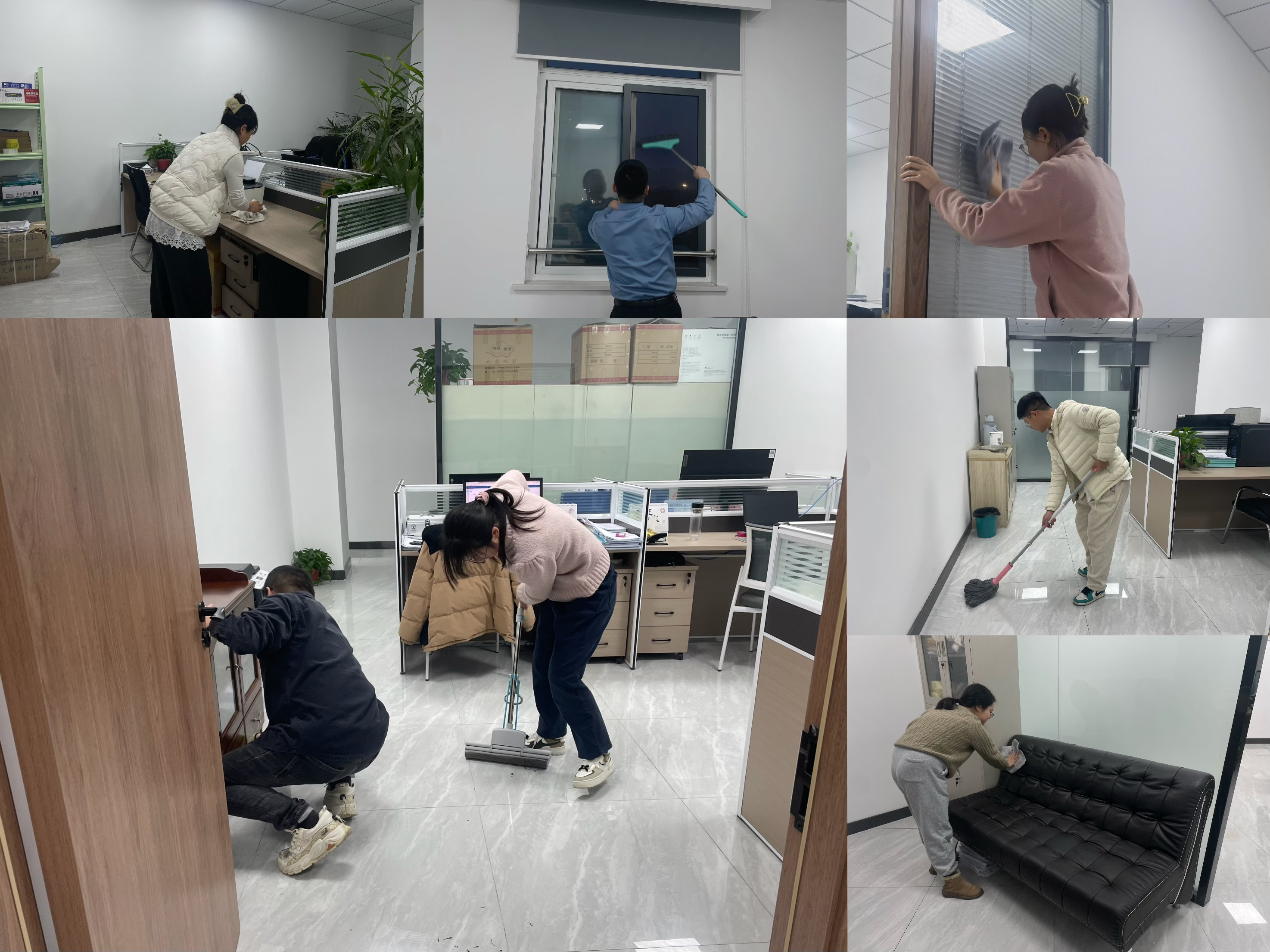 活動中,大家分工明確,配合默契。有的擦拭辦公設備,有的清掃地面,有的分類整理辦公用品、資料文件,還有的擦拭門窗,讓窗戶明亮通透,仿佛映照著新春的希望。經(jīng)過眾人共同努力,辦公區(qū)域煥然一新。