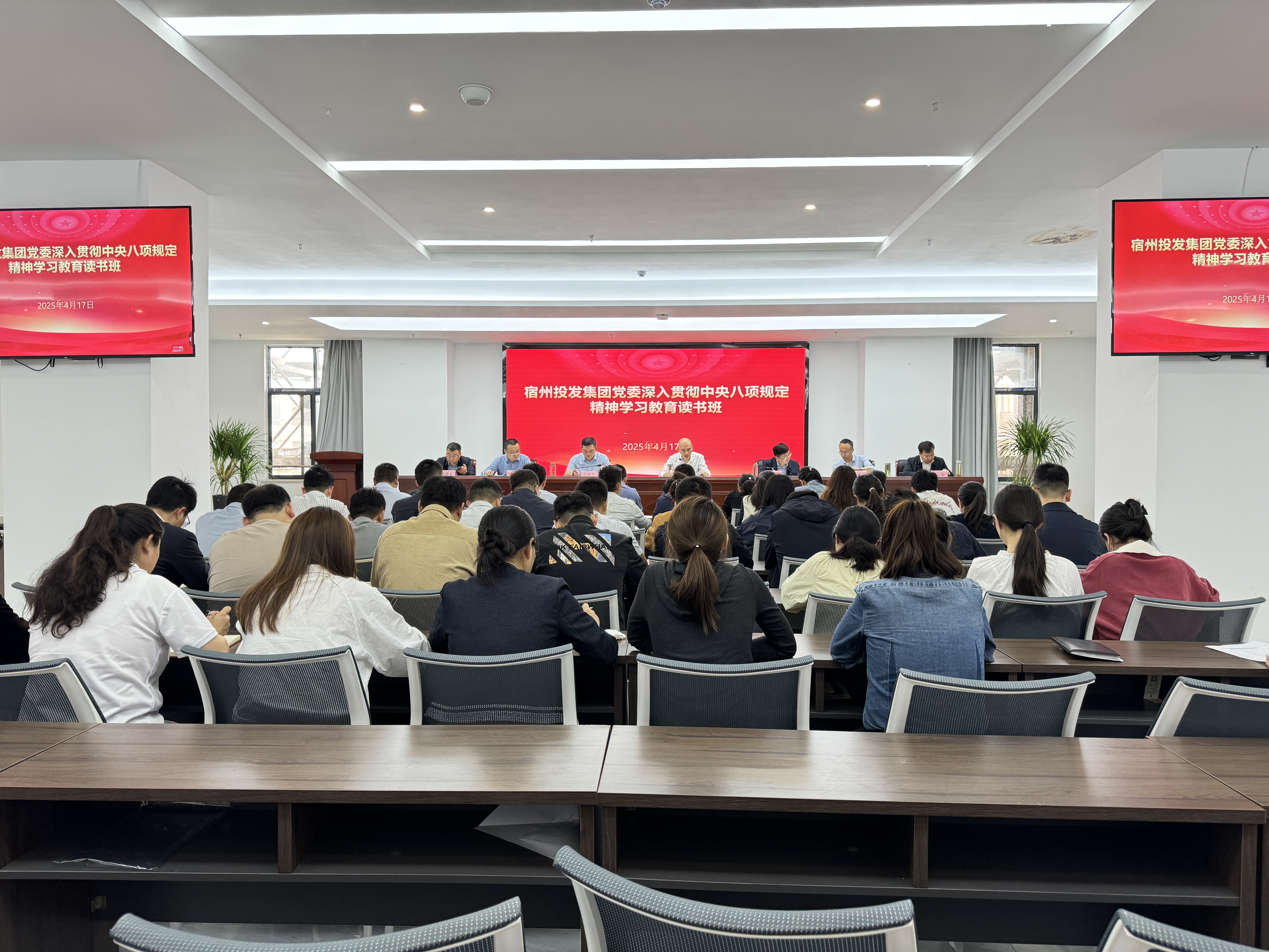 4月17日至18日,宿州投發(fā)黨委舉辦深入貫徹中央八項規(guī)定精神學(xué)習(xí)教育讀書班。建工股份黨委委員、副總經(jīng)理,宿州投發(fā)黨委書記、董事長朱忠明作開班講話,公司領(lǐng)導(dǎo)班子成員參加讀書班并開展研討。