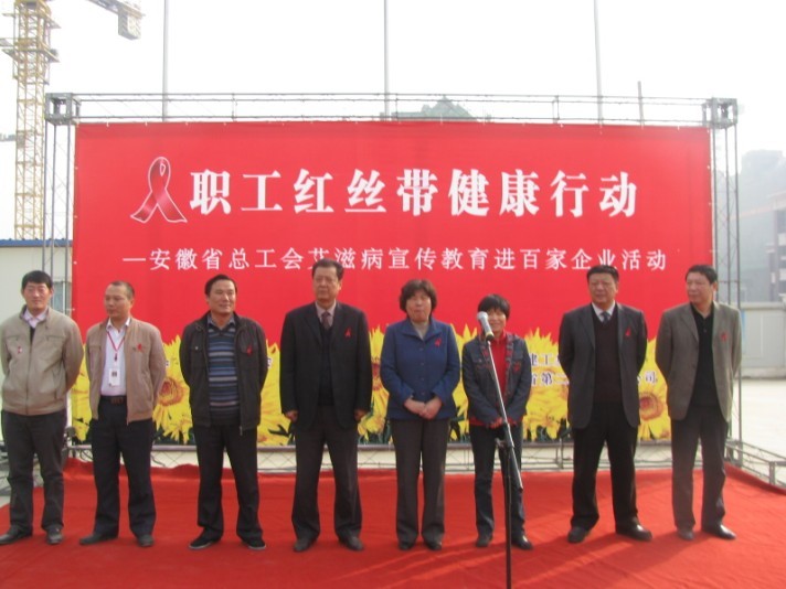 2010年11月24日上午,第23個(gè)“世界艾滋病日”即將來(lái)臨之際,由安徽省總工會(huì)、省建工集團(tuán)開展的“職工紅絲帶健康防艾宣傳進(jìn)百家企業(yè)活動(dòng)”在省二建天下錦城二期項(xiàng)目部舉行啟動(dòng)儀式,省總工會(huì)廳級(jí)巡視員、省女職工委主任牛和桂,省建工集團(tuán)工會(huì)副主席李鵬飛,工會(huì)女職工委主任胡愛(ài)紅,省二建黨委書記朱治淮、工會(huì)主席李林等出席了啟動(dòng)儀式。該項(xiàng)目部百余農(nóng)民工表示,今后要積極主動(dòng)地加入到預(yù)防和控制艾滋病的行動(dòng)中來(lái),為遏制艾滋病在我省流行蔓延盡到應(yīng)有的貢獻(xiàn)。