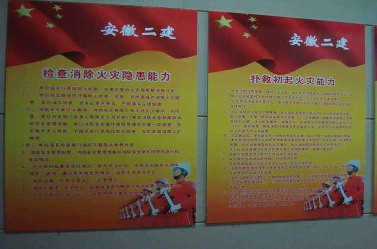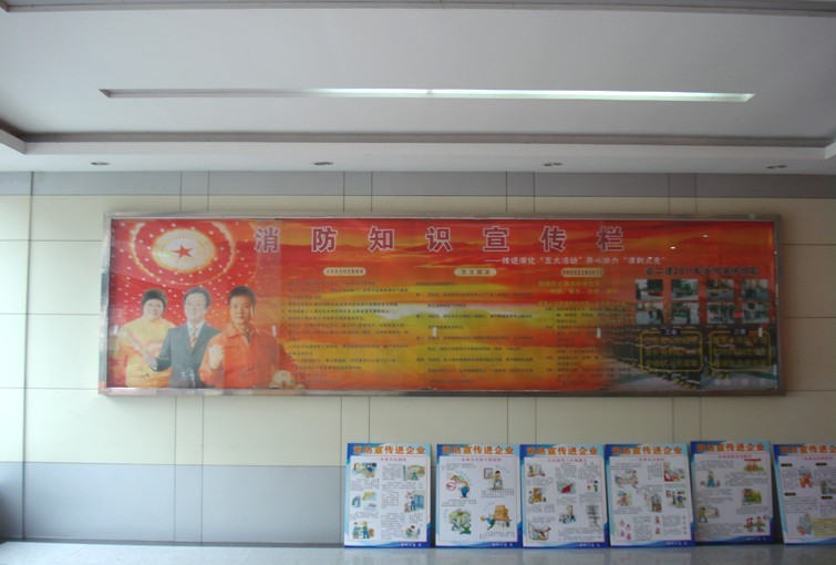 圖為公司辦公樓宣傳欄中的消防知識內容