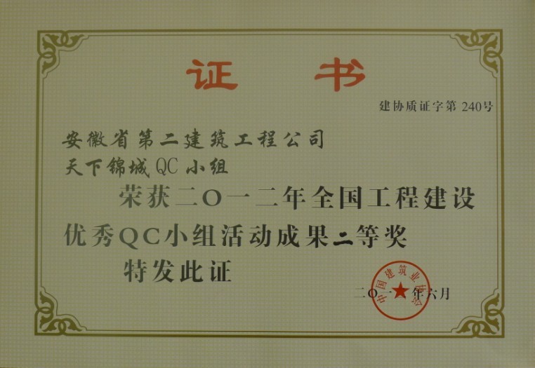 近日,從2012年度全國(guó)工程建設(shè)優(yōu)秀質(zhì)量管理(QC)小組評(píng)審表彰會(huì)上傳來好消息,二公司質(zhì)量技術(shù)處QC小組《提高外墻柔性面磚施工合格率》課題從眾多項(xiàng)目成果中脫穎而出,經(jīng)國(guó)家工程建設(shè)質(zhì)量獎(jiǎng)審定委員會(huì)審定,榮獲中國(guó)建筑業(yè)協(xié)會(huì)工程建設(shè)質(zhì)量管理分會(huì)“2012年度全國(guó)工程建設(shè)優(yōu)秀QC小組活動(dòng)成果”二等獎(jiǎng),并獲頒優(yōu)秀成果證書及獎(jiǎng)牌。該課題還榮獲安徽省建設(shè)工程優(yōu)秀QC小組一等獎(jiǎng)。
