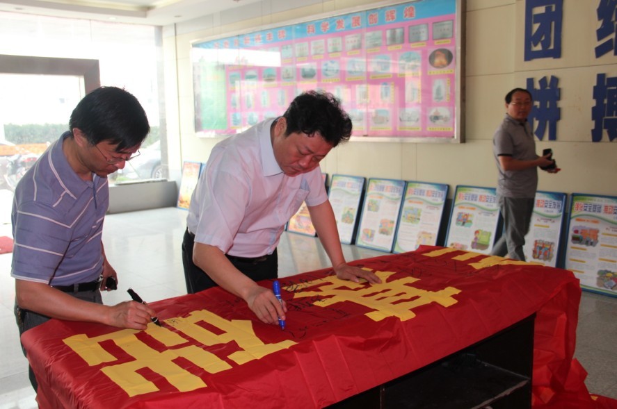 今年“安全生產月”的主題是“強化安全基礎、推動安全發(fā)展”。在活動現(xiàn)場,公司機關全體員工在印有主題的橫幅上簽名,也拉開了安全生產月各項活動的序幕。