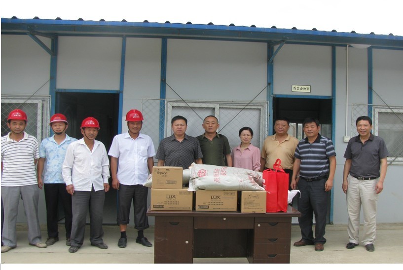 7月19日上午,集團(tuán)公司總法律顧問申玉恩在集團(tuán)保衛(wèi)部信訪辦主任龔志酬、紀(jì)委專職委員潘琳和安徽二建公司黨委書記朱治淮、工會(huì)主席李林等陪同下,來到二公司承建的安徽省女子監(jiān)獄遷建工程項(xiàng)目部“送清涼”。申總一行為工地送去了綠豆、白糖、香皂、毛巾、人丹、風(fēng)油精等防暑降溫用品,并要求項(xiàng)目部在高溫期間要合理安排作息時(shí)間,抓好安全管理,做好項(xiàng)目部人員的防暑降溫工作。
