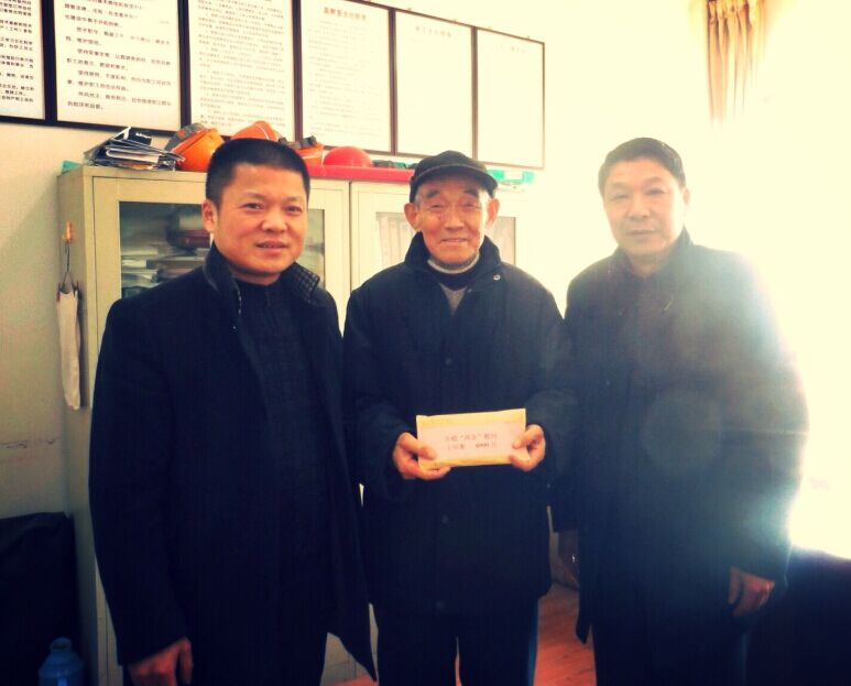 新年來臨前夕,2014年12月29日,公司黨委書記劉賢奇、工會主席李林等看望省級勞動模范王紹衡,將“兩節(jié)”慰問金送到王紹衡手中,并再三叮囑勞模保重身體,預(yù)祝老人“兩節(jié)”愉快。此次公司工會共為11名省部級勞模發(fā)放兩節(jié)慰問金74200元。