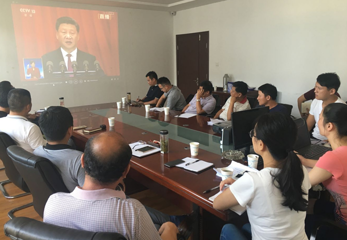 在觀看學(xué)習(xí)習(xí)總書記在慶祝中國(guó)共產(chǎn)黨成立95周年大會(huì)上的講話時(shí),同志們聚精會(huì)神,不時(shí)提筆記錄,緊隨著總書記的講話內(nèi)容邊學(xué)習(xí)邊思考。