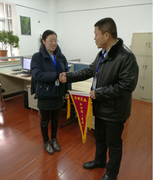經(jīng)考評(píng)小組公正嚴(yán)謹(jǐn)?shù)臋z查評(píng)比,人力資源部、保衛(wèi)部獲得2017年元月份“文明衛(wèi)生辦公室”榮譽(yù)稱號(hào),黨委劉賢奇書(shū)記對(duì)獲得稱號(hào)的部門(mén)進(jìn)行了授旗,并寄語(yǔ)“再接再勵(lì)不斷提高”。
