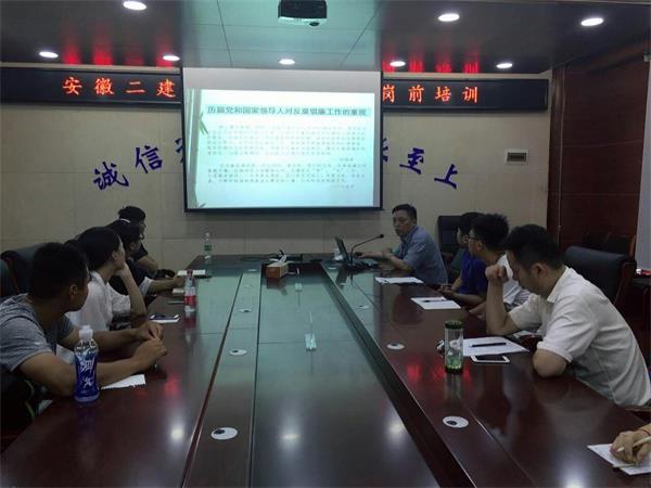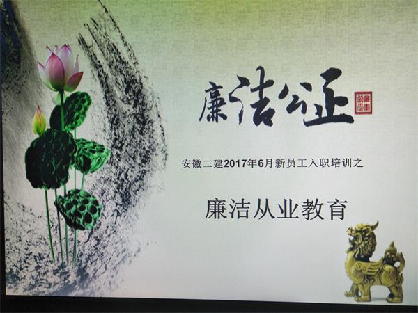 6月19日,安徽二建紀(jì)委對(duì)新入職員工進(jìn)行了崗前廉潔從業(yè)教育培訓(xùn),首次將廉潔自律作為走上新崗位的第一課,引導(dǎo)和加強(qiáng)新員工在思想上牢固樹(shù)立“廉潔從業(yè),遵紀(jì)守法”的廉潔意識(shí),提高廉潔自律的辨識(shí)能力和自我約束力。