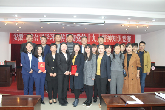 經(jīng)過三輪激烈的比賽,最終由一分公司第一代表隊獲得本次學(xué)習(xí)十九大精神知識競賽的一等獎;機關(guān)第二代表隊、后勤綜合服務(wù)部代表隊分獲二等獎;安裝公司代表隊、二分公司代表隊以及四分公司代表隊分獲三等獎。