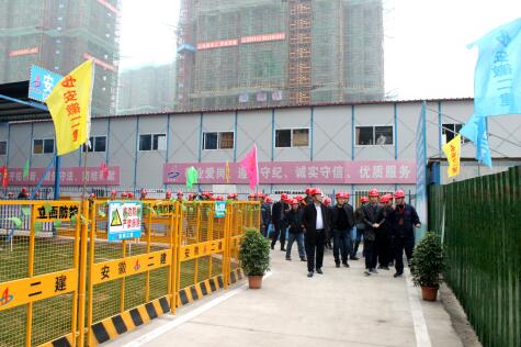 12月1日,安徽二建阜陽大學(xué)城•紅街項(xiàng)目、安建楓林源筑項(xiàng)目施工現(xiàn)場舉行了在建項(xiàng)目現(xiàn)場觀摩會(huì)。活動(dòng)旨在深入推進(jìn)公司基礎(chǔ)管理深化年活動(dòng),充分發(fā)揮基層黨組織推動(dòng)發(fā)展、服務(wù)職工、凝聚人心、促進(jìn)和諧作用,使黨建工作更好地融入企業(yè)的生產(chǎn)經(jīng)營管理之中,進(jìn)一步提高施工現(xiàn)場文明生產(chǎn)施工和安全質(zhì)量管理水平。公司黨委書記劉賢奇、副總經(jīng)理葉和永出席,所屬分公司黨支部書記、分管安全生產(chǎn)副經(jīng)理及安全科、綜合辦負(fù)責(zé)人、全體自營項(xiàng)目項(xiàng)目經(jīng)理、安全負(fù)責(zé)人、項(xiàng)目黨支部負(fù)責(zé)人參加觀摩會(huì)。