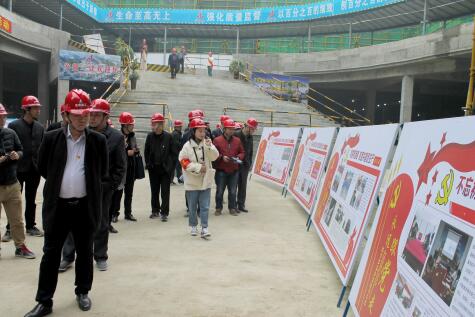 阜陽大學(xué)城•紅街項(xiàng)目是公司創(chuàng)建黨員先鋒號(hào)的重點(diǎn)項(xiàng)目,項(xiàng)目自開建以來,圍繞抓黨建促生產(chǎn)的根本目標(biāo),以黨群目標(biāo)責(zé)任書為抓手,不斷總結(jié)和創(chuàng)新項(xiàng)目黨建工作新思路、新方法。黨群工作組織機(jī)構(gòu)健全、活動(dòng)制度和目標(biāo)責(zé)任明確,各類標(biāo)識(shí)標(biāo)牌制作新穎、活動(dòng)開展盡然有序、各項(xiàng)資料整理規(guī)范。觀摩中,大家在現(xiàn)場負(fù)責(zé)人的介紹下,參觀了現(xiàn)場文化長廊、黨建之窗、黨員活動(dòng)室、查看了創(chuàng)建材料,大家對(duì)項(xiàng)目黨建開展所取得的成績紛紛表示肯定。