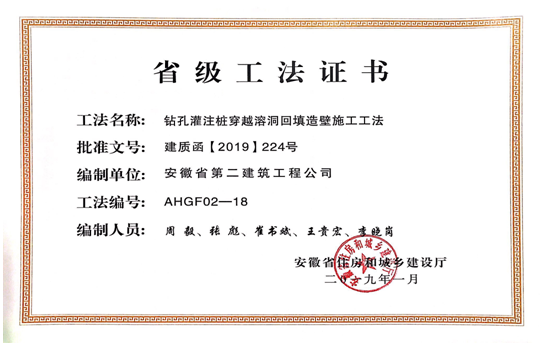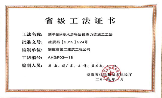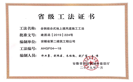 1月23日,安徽省住房和城鄉(xiāng)建設(shè)廳組織省級(jí)工法評(píng)審委員會(huì),對(duì)企業(yè)申報(bào)的277項(xiàng)工法進(jìn)行了評(píng)審并予以公示。經(jīng)審定,“預(yù)應(yīng)力型鋼裝配式組合內(nèi)支撐施工工法”等103項(xiàng)工法為安徽省2018年度省級(jí)工法。由公司編寫的《鉆孔灌注樁穿越溶洞回填造壁施工工法》、《基于BIM技術(shù)后張法預(yù)應(yīng)力梁施工工法》、《全鋼組合式地上通風(fēng)系統(tǒng)施工工法》3項(xiàng)工法被評(píng)為省級(jí)工法。