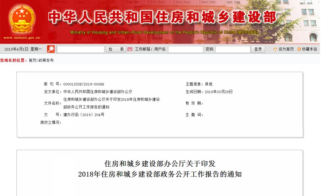■ 2019年,住房和城鄉(xiāng)建設(shè)部將以習(xí)近平新時代中國特色社會主義思想為指導(dǎo),不斷完善政務(wù)公開工作機制,提高政務(wù)公開工作水平。