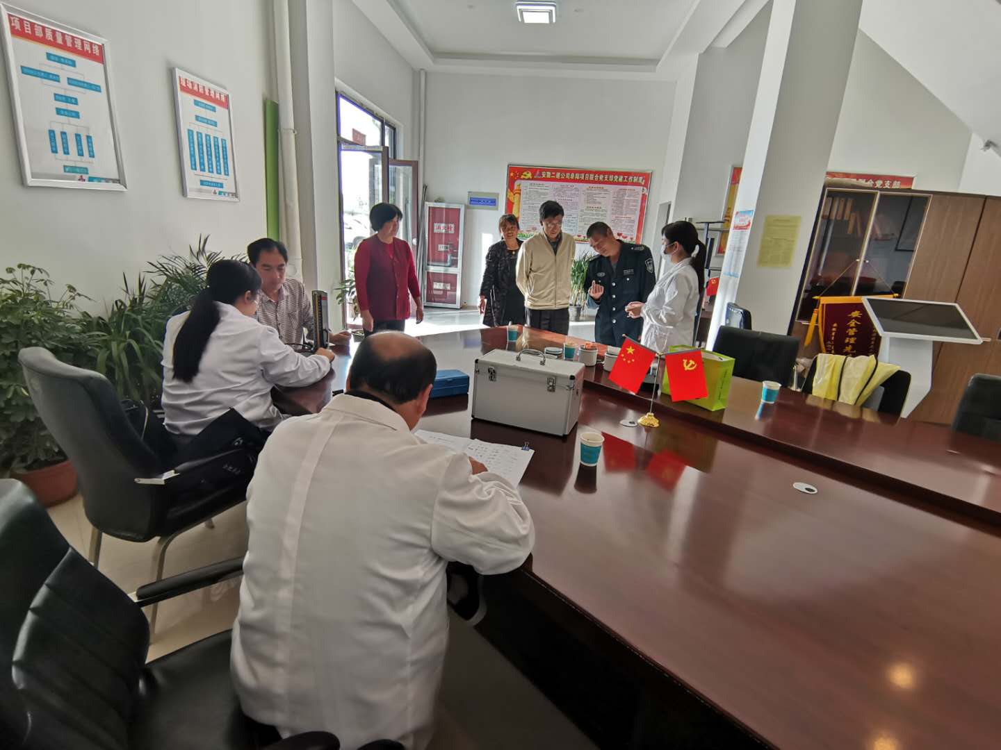 為切實保障員工身體健康,增強企業(yè)凝聚力,構(gòu)建和諧的企業(yè)環(huán)境,充分體現(xiàn)公司“健康以人為本”的理念,4月17日公司后勤綜合服務(wù)部醫(yī)務(wù)人員赴阜陽直屬項目部為員工開展健康體檢 。 體檢包括測量血壓 、 血糖,對員工咨詢的一些健康問題進行解答。通過體檢,使每一位員工都能了解自身健康狀況,確保以充沛的精力投入工作與生活,同時也讓員工感受到來自公司大家庭的溫暖。