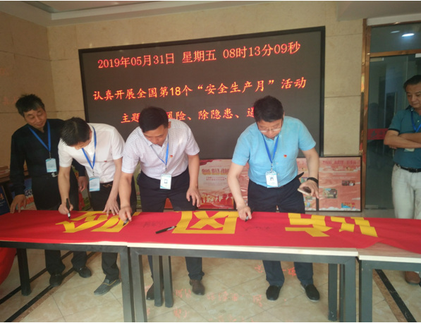 2019年5月31日,公司安全管理部、工會在公司大院舉行了全國第十八個“安全生產(chǎn)月”活動啟動儀式,公司機關(guān)全體職工參加。總經(jīng)理陸勤斌作啟動講話,指出安全生產(chǎn)工作的重要性和“安全生產(chǎn)月”活動的意義。分管安全副總經(jīng)理葉和永帶領(lǐng)全體職工進行了安全宣誓,隨后,在印有“安全生產(chǎn)月”主題“防風險 除隱患 遏事故”的橫幅上簽名。