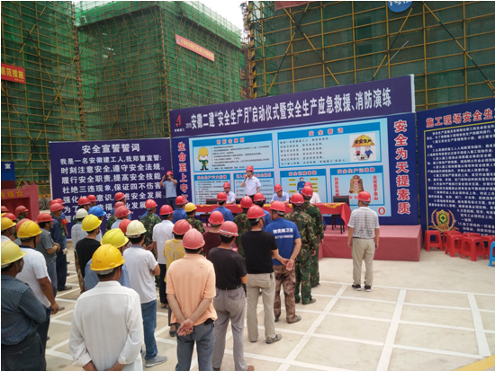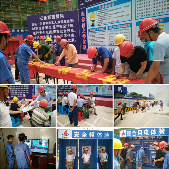 活動(dòng)當(dāng)天,共發(fā)放安全宣傳資料100余份,接受項(xiàng)目職工咨詢50余人次;開(kāi)展預(yù)防高墜、中暑及火災(zāi)救援演練;給工友們體檢,告知夏季高溫季節(jié)施工注意事項(xiàng);帶工友們觀看圖片展覽,講解安全生產(chǎn)知識(shí),到安全教育體驗(yàn)館進(jìn)行實(shí)體和VR虛擬體驗(yàn);現(xiàn)場(chǎng)全體人員參與宣誓及簽名活動(dòng)。現(xiàn)場(chǎng)活動(dòng)結(jié)束后,安全管理部在會(huì)議室開(kāi)展安全主題宣講活動(dòng),帶領(lǐng)項(xiàng)目職工學(xué)習(xí)《安全生產(chǎn)條例》及《建筑安全生產(chǎn)標(biāo)準(zhǔn)化示范工地評(píng)價(jià)標(biāo)準(zhǔn)》(DB34/T5040-2016),組織項(xiàng)目管理人員開(kāi)展安全生產(chǎn)經(jīng)驗(yàn)交流會(huì),總結(jié)工作亮點(diǎn),查找不足,促進(jìn)今后工作的順利開(kāi)展。