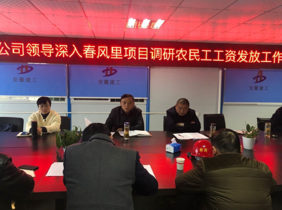 根據(jù)集團(tuán)公司《關(guān)于開展拖欠農(nóng)民工工資專項(xiàng)排查工作的通知》的要求,12月9日,公司黨委副書記、紀(jì)委書記仇多維對項(xiàng)目的農(nóng)民工工資發(fā)放問題進(jìn)行調(diào)研,信訪保衛(wèi)部、工程管理部、人力資源部相關(guān)人員陪同。