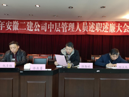 為認真總結(jié)2019年度公司各部門和分公司的主要工作,進一步強化中層管理人員的責任意識,提高各部門和分公司工作能力,打造一支高素質(zhì)的管理團隊,2020年1月6日,公司召開2019年度中層管理人員述職述廉大會。公司總經(jīng)理陸勤斌及領(lǐng)導班子成員、中層副職以上人員與會。大會由黨委副書記、紀委書記仇多維主持。