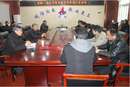 1月14日下午,安徽二建公司召開領導及中層管理人員會議,宣布安徽建工集團控股有限公司關于安徽二建公司領導班子調(diào)整的決定。建工控股黨委工作部部長、建工股份黨委副書記徐文聯(lián)出席會議,公司領導班子、機關部門負責人、分公司黨政主要領導參會。