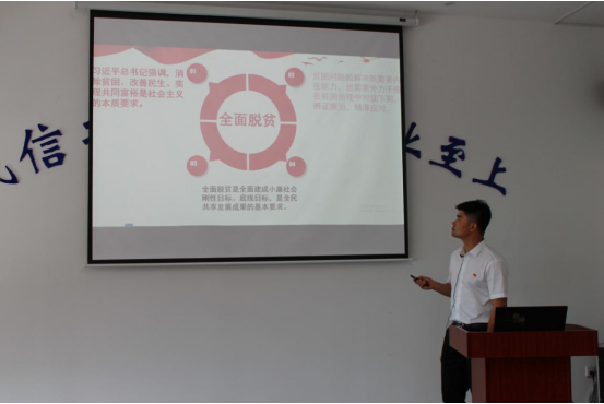 微宣講競賽結束后,緊接著開展了“黨課開講啦”活動,所屬各支部書記、優(yōu)秀黨員代表結合自己的工作實際,講述對決勝全面建成小康社會、決戰(zhàn)脫貧攻堅、打贏疫情防控阻擊戰(zhàn)等一線先進事跡的所見所聞所悟,引起了大家的深思與共鳴,為全面打好精準脫貧攻堅戰(zhàn)提供堅強組織保證。