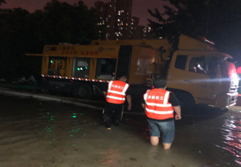 7月18日,合肥遭受77年一遇單日最大降雨。藍天公寓和大興鎮(zhèn)興泰苑出現(xiàn)內(nèi)澇,情況緊急,人民群眾生命財產(chǎn)安全遭受威脅,汛情就是戰(zhàn)斗令,二分公司接到指令,馬上組建30余人的抗洪突擊隊,緊急調(diào)運大功率水泵2臺,配電箱2個,80米電線電纜,300米水管等防汛物資,20分鐘極速趕到抗洪前線?,F(xiàn)場有的架設(shè)水泵、有的鋪設(shè)電纜、有的配合抽水排澇,分工明確、爭分奪秒。經(jīng)過數(shù)小時的緊急救援,至凌晨,災(zāi)情得到有效控制。奮戰(zhàn)了8個小時的志愿者們才撤出前線。
