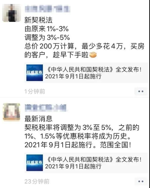 一時間“房價要漲,契稅要漲,買房要趁早”的消息在朋友圈廣泛流傳,甚至有一部分房產(chǎn)中介開始借此炒作買房恐慌。