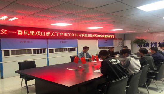 另外傳達(dá)了認(rèn)真學(xué)習(xí)安徽省紀(jì)委《關(guān)于貫徹落實(shí)習(xí)近平總書記重要批示精神 加強(qiáng)監(jiān)督執(zhí)紀(jì) 堅(jiān)決制止餐飲浪費(fèi)行為的通知》和公司紀(jì)委《關(guān)于嚴(yán)肅2020年中秋國(guó)慶期間紀(jì)律作風(fēng)的通知》。