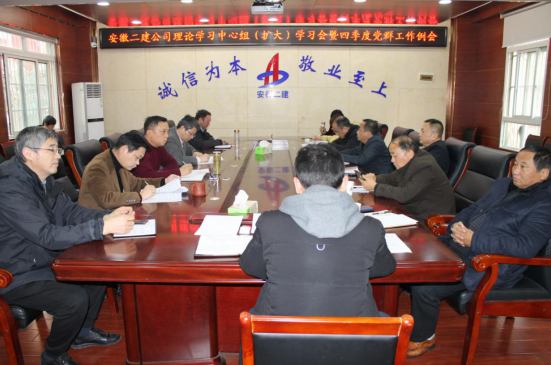 12月11日下午,安徽二建公司召開黨委理論學習中心組(擴大)暨四季度黨群工作會,公司領導班子、黨委工作部、紀檢監(jiān)察室、工會、團委、信訪保衛(wèi)部、人力資源部主要負責人,所屬各黨支部書記參加。會議由黨委副書記、紀委書記仇多維主持。