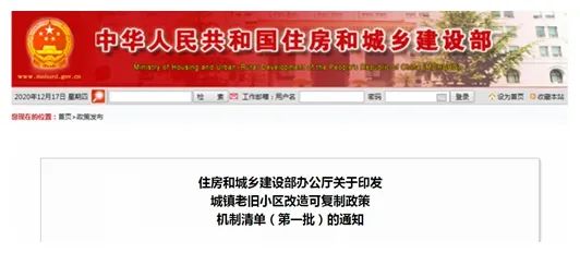 日前,住房和城鄉(xiāng)建設部印發(fā)城鎮(zhèn)老舊小區(qū)改造可復制政策機制清單(第一批)。