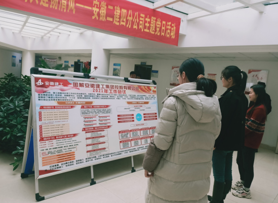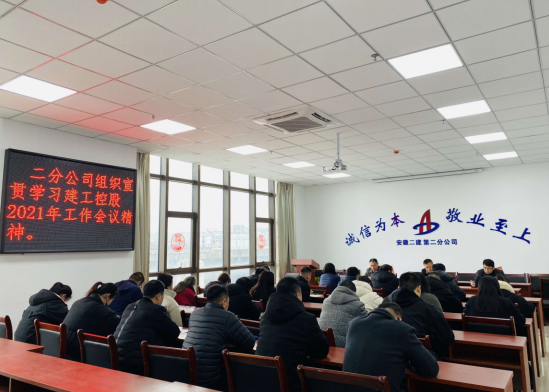為及時傳達落實安徽建工集團控股有限公司2021年工作會議精神,近期,安徽二建公司通過制作會議內(nèi)容展板、召開學(xué)習(xí)會議等方式,供廣大職工學(xué)習(xí)。通過學(xué)習(xí)宣貫,定信心、鼓干勁、葆初心、明思路,確保會議精神傳達到每一個崗位、每一名員工。引導(dǎo)員工深刻理解會議精神和內(nèi)涵,把思想和行動統(tǒng)一到做好今后各項工作上去。