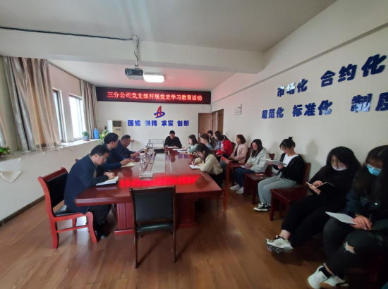 三分公司黨支部開展黨史學(xué)習(xí)教育活動(dòng),分公司機(jī)關(guān)全體人員參加,活動(dòng)由支部書記陳習(xí)武主持。首先,陳習(xí)武帶領(lǐng)大家學(xué)習(xí)了二建黨發(fā)【2021】13號(hào)文《安徽二建公司黨委關(guān)于開展黨史學(xué)習(xí)教育的工作方案》,并就分公司黨支部的黨史學(xué)習(xí)教育活動(dòng)做了詳細(xì)安排部署,要求全體黨員干部把思想和行動(dòng)統(tǒng)一到集團(tuán)、公司黨委的決策部署上來,高標(biāo)準(zhǔn)、高質(zhì)量完成黨史學(xué)習(xí)教育各項(xiàng)任務(wù),努力做到學(xué)史明理、學(xué)史增信、學(xué)史崇德、學(xué)史力行,以優(yōu)異成績迎接建黨100周年。隨后,陳習(xí)武帶領(lǐng)大家上了一堂生動(dòng)的黨史課?!皬纳虾J瘞扉T到嘉興南湖,一艘小小紅船承載著人民的重托、民族的希望,越過急流險(xiǎn)灘,穿過驚濤駭浪,成為領(lǐng)航中國行穩(wěn)致遠(yuǎn)的巍巍巨輪。”。通過視頻和講解相結(jié)合,為大家敘述了從中國共產(chǎn)黨成立到建立新中國,28年間,黨召開了一次次重要會(huì)議。這些會(huì)議作出的決策,指引了中國革命的方向,推動(dòng)了歷史進(jìn)程,具有里程碑意義。大家紛紛表示,將從黨史中汲取智慧和力量,堅(jiān)定信仰信念,進(jìn)一步提高黨性修養(yǎng),不忘初心,以實(shí)際行動(dòng)發(fā)揮好黨員干部的模范帶頭作用,積極投入到干事創(chuàng)業(yè)中去,為分公司的發(fā)展添磚加瓦。