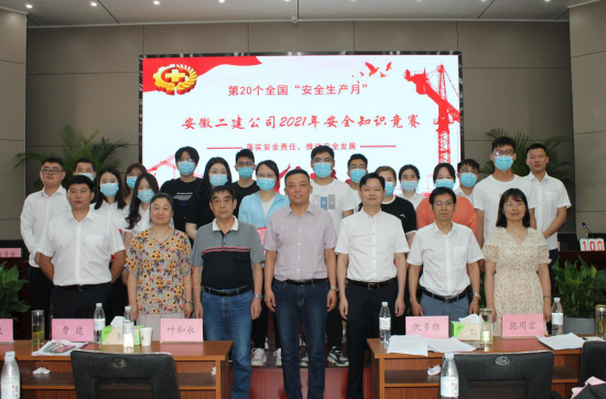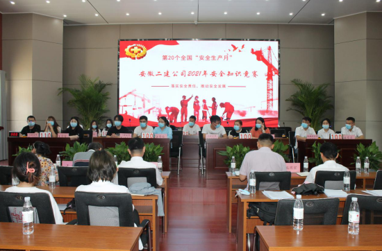 在全國(guó)第20個(gè)“安全生產(chǎn)月”到來之際。為了營(yíng)造濃厚的安全生產(chǎn)氛圍,人人講安全、人人重視安全。6月7日下午,在安徽二建公司新會(huì)議室舉行以“落實(shí)安全責(zé)任,推動(dòng)安全發(fā)展”為主題的安全知識(shí)競(jìng)賽。公司黨委副書記、紀(jì)委書記仇多維,副總經(jīng)理葉和永,安全總監(jiān)、安全管理部主任曹建,黨委工作部主任施用宏,工會(huì)副主席、女工主任王俊出席活動(dòng)并擔(dān)任評(píng)委。14支代表隊(duì)及領(lǐng)隊(duì)共120多人參加。