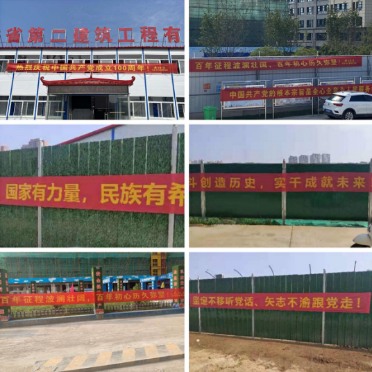鑄就百年輝煌,書寫千秋偉業(yè)。為迎接中國共產(chǎn)黨成立100周年,六分公司機(jī)關(guān)及所屬項(xiàng)目部紛紛懸掛張貼了有關(guān)慶祝中國共產(chǎn)黨成立100周年的標(biāo)語,營造濃厚的宣傳氛圍,把黨史學(xué)習(xí)教育進(jìn)一步推向深入,大力營造“黨的盛典、人民的節(jié)日”濃厚氛圍,充分展示中國共產(chǎn)黨百年光輝歷程、偉大成就和寶貴經(jīng)驗(yàn),全面營造濃厚氛圍, 共慶黨的百年華誕,大力唱響共產(chǎn)黨好、社會主義好,改革開放好、偉大祖國好、各族人民好的時代主旋律。
