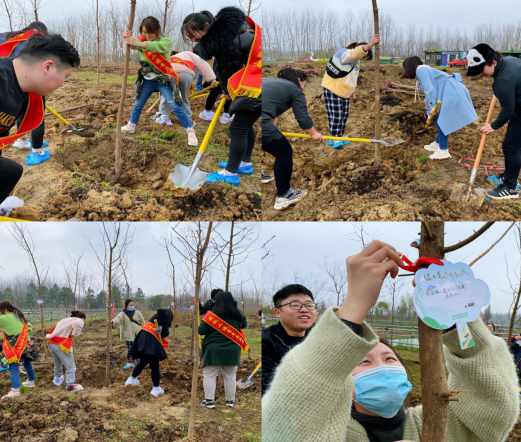 整個(gè)活動(dòng)一直進(jìn)行到中午12點(diǎn),他們忘記了寒冷,忘記了勞累,只記得手中的工具和種下的樹苗,在大家的辛勤勞動(dòng)下,無數(shù)株鮮活的生命在微風(fēng)的吹拂下仿佛吐出了點(diǎn)點(diǎn)綠芽,春天的訊息在枝頭跳動(dòng),大家植樹的激情在心底躍動(dòng),他們或是在自己栽種的樹旁合影留念,或是在一旁靜靜地看著自己的勞動(dòng)成果。