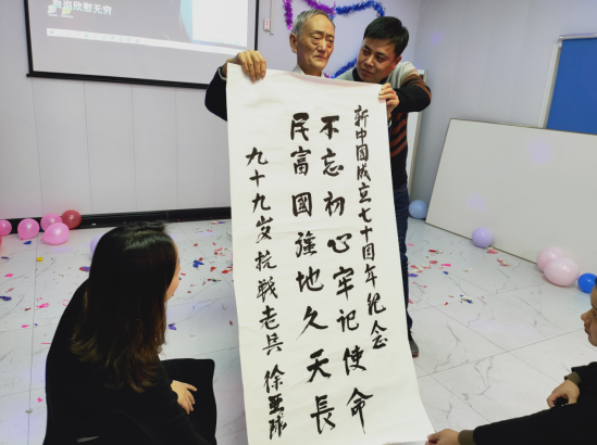 31日下午,項(xiàng)目職工包起一盤盤熱氣騰騰的餃子,歡迎前來(lái)參加晚會(huì)的嘉賓。晚7點(diǎn)半,聯(lián)歡會(huì)正式拉開帷幕。首先,支部書記董建民致辭,對(duì)全體干部職工一年來(lái)為項(xiàng)目的發(fā)展所做出的貢獻(xiàn)和努力表示肯定和感謝,并向廣大職工及其家屬送上了新年的美好祝福。晚會(huì)過(guò)程中,由項(xiàng)目部女員工編排的舞蹈《浪漫櫻花》令人贊嘆,機(jī)關(guān)員工李丹然的魔術(shù)表演《新貴妃醉酒》讓人驚喜連連,由安徽省新四軍歷史研究會(huì)淮海委員會(huì)征修、周芳琴聯(lián)袂出演的小品《賣菜》令人捧腹大笑,《成都》、《一生所愛》、《隱形的翅膀》等歌曲串燒給大家獻(xiàn)上了一場(chǎng)視聽盛宴,朗誦《回家過(guò)年》營(yíng)造出濃濃的節(jié)日氛圍。聯(lián)歡現(xiàn)場(chǎng),背夾氣球、比劃猜謎等游戲更是掀起一波又一波的高潮。接近尾聲時(shí),張振山會(huì)長(zhǎng)帶來(lái)了安徽省新四軍歷史研究會(huì)淮海委員會(huì)原會(huì)長(zhǎng)徐亞球的一副珍貴的書法,并祝愿安徽二建公司蓬勃發(fā)展、再創(chuàng)輝煌!
