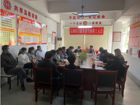 2020年4月27日下午,后勤綜合服務(wù)部召開職工大會,16名職工參加,公司總經(jīng)理助理、市場管理部主任蒯家江到會指導(dǎo)。
