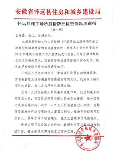 3月6日,懷遠(yuǎn)縣縣長張明廷、住建局局長崔華、質(zhì)檢站站長褚建新一行到安徽二建懷遠(yuǎn)中南瓏府項(xiàng)目指導(dǎo)復(fù)工復(fù)產(chǎn)和疫情防控工作。