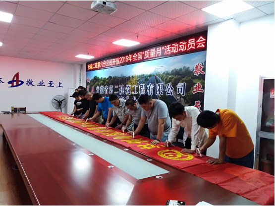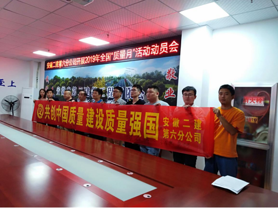 為認真落實安徽建工集團股份有限公司關于開展2019年“質量月”活動的通知,9月3日,第六分公司召開2019年“質量月”活動專題會進行宣貫,組織職工進行橫幅簽名活動,以“共創(chuàng)中國質量 建設質量強國”為主題,大力營造“人人重視高質量,人人創(chuàng)造高質量,人人享受高質量”的良好氛圍,進一步規(guī)范質量安全行為,提高質量安全管理水平,全面提升項目管理水平,要求項目部按照“質量月”活動內容,結合項目實際,精心安排、周密部署,以“質量月”活動為契機,加大項目質量宣傳力度,進一步提高全員質量意識,開展質量示范創(chuàng)建,創(chuàng)建公司質量品牌,牢固樹立全心全意為用戶提供優(yōu)質服務的安徽建工一流企業(yè)現(xiàn)象。