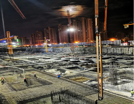 施工進(jìn)入白熱化階段,遇到材料短缺、勞務(wù)班組緊張等困難,分公司領(lǐng)導(dǎo)更高度重視,組建了由各個(gè)科室負(fù)責(zé)人參加的“重點(diǎn)項(xiàng)目工作協(xié)調(diào)QQ群”,把項(xiàng)目遇到的難題及時(shí)反饋并予以解決,分公司經(jīng)理馬福才、支部書(shū)記陳習(xí)武更是經(jīng)常駐扎現(xiàn)場(chǎng),解決勞務(wù)外援、協(xié)調(diào)處理大宗主材進(jìn)場(chǎng)等問(wèn)題。在每日召開(kāi)的生產(chǎn)調(diào)度會(huì)上,項(xiàng)目經(jīng)理汪傳松多次強(qiáng)調(diào),要超前謀劃,科學(xué)組織,大膽管理,各勞務(wù)班組根據(jù)現(xiàn)有工作面盡快增加班組和一線(xiàn)作業(yè)工人,上足人員;項(xiàng)目部要合理配置人力、物力、塔吊等垂直運(yùn)輸設(shè)備,安排好工序銜接,實(shí)現(xiàn)晝夜不間斷施工,同時(shí)要確保“大干大安全、小干有安全”,針對(duì)業(yè)主6月20日提出正負(fù)零節(jié)點(diǎn)計(jì)劃,項(xiàng)目部制定了四點(diǎn)措施:一是分解目標(biāo),細(xì)化責(zé)任,日排計(jì)劃,要求現(xiàn)場(chǎng)施工人員根據(jù)圖紙認(rèn)真梳理計(jì)算各標(biāo)段工程量,詳細(xì)分解施工任務(wù);二是明確現(xiàn)場(chǎng)責(zé)任分工,加大管理力度,督促現(xiàn)場(chǎng)盯控力度,保障工程質(zhì)量;三是加大協(xié)調(diào)力度,優(yōu)化資源,整合機(jī)械設(shè)備發(fā)揮最大的生產(chǎn)力;四是加強(qiáng)與勞務(wù)班組負(fù)責(zé)人的溝通,明確節(jié)點(diǎn)任務(wù),輸貫信念,激發(fā)工人潛力,提高工作效率。全體人員要同心協(xié)力,充分發(fā)揮團(tuán)結(jié)奮進(jìn)精神,要見(jiàn)縫插針,穿插作業(yè),要有“搶晴天戰(zhàn)雨天,白天晚上加班干”的精神,強(qiáng)勢(shì)推進(jìn)施工進(jìn)度。從5月12日到5月25日已完成產(chǎn)值2300萬(wàn),創(chuàng)安徽二建公司月產(chǎn)值歷史新高;截至目前,鋼筋用量1700噸;混凝土用量11000方,平均每日混凝土澆筑量550方。
